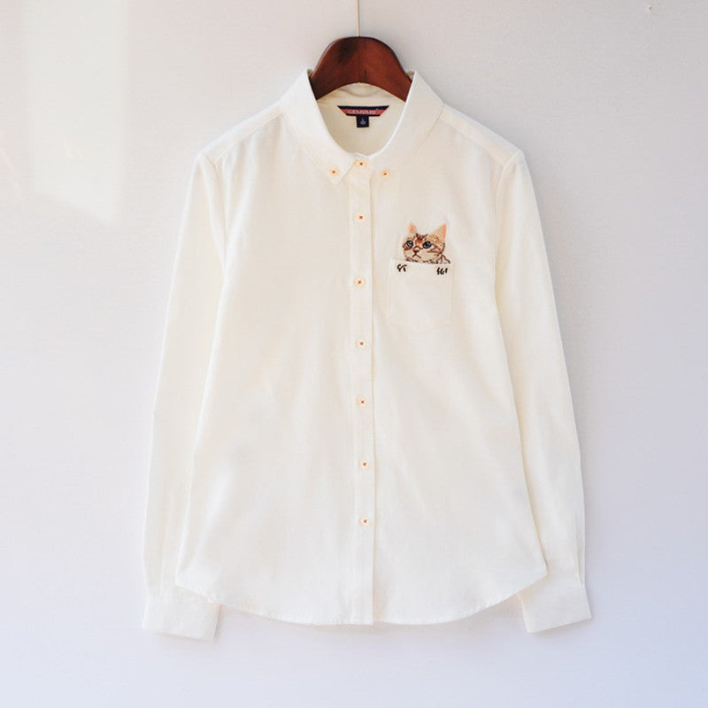 - decoration: cat embroidery ladies shirts